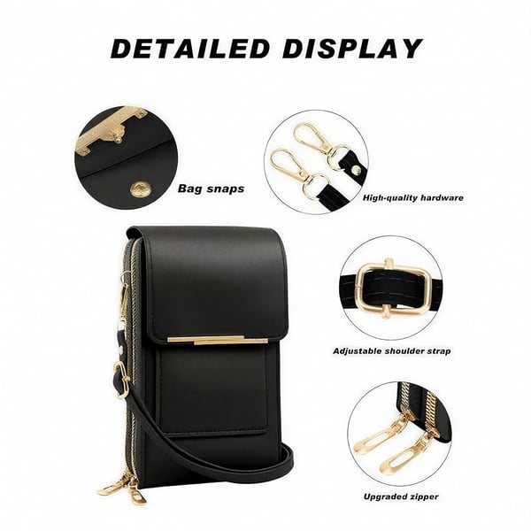 Simpan ponsel, kartu, dan kosmetik Anda secara rapi dalam desain ramping yang mempercantik penampilan harian.